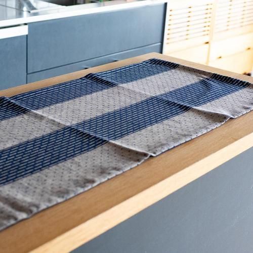 久留米絣テーブルセンター(紺白縞柄)