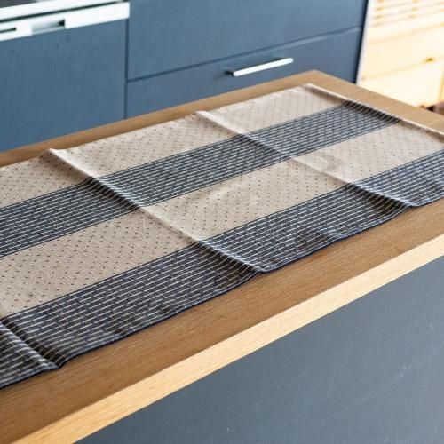 久留米絣テーブルセンター(ベージュグレー縞柄)