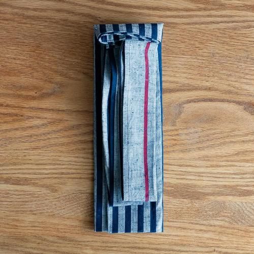 貴重な手織りの久留米絣で作ったペタンコなポーチです。